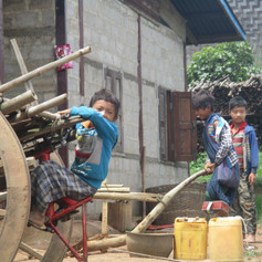 A chaque fois des rencontres inoubliables et une ambiance bien particulière. Il faut s'imaginer assis par terre au milieu des ces grandes maisons en tech qui sentent la fumée, à attendre les excellents repas birmans préparés par Cookie, sur les cuisines au feu de bois de nos hôtes. Ensuite, tout le monde s’assied autour du feu ou de la table et on parle, on questionne., on échange bières et cigares. Au début nous sommes toujours les plus bavards (par l'intermédiaire de notre cher cookie, qui maîtrise les différents dialectes des villages que l'on traverse), mais très vite la curiosité des locaux prend le dessus et ils posent plein de questions. Le cercle s'agrandit au fur et à mesure que les enfants et petits enfants rentrent des champs ou osent enfin nous rejoindre dans la maison familiale. Certains ont des smartphones et nous prennent discrètement en photo !