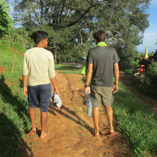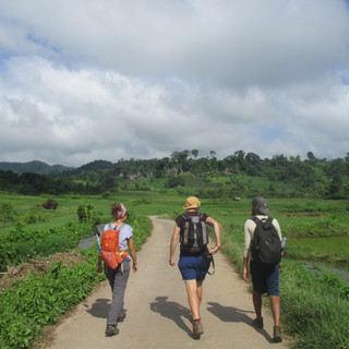 Le second jour on continue vers un autre village encore plus enfoncé. On a perdu Mathilde en route, prise d'une forte fièvre durant la nuit, elle est redescendue! Petite incursion dans la jungle en contre-bas à la recherche d'une grande chute d'eau cachée. Petit pic-nic avec cuisine au bambou avant le retour au village pour passer la nuit. Les paysages de ce côté sont grandioses et nous rappellent un peu la cordillère péruvienne recouverte de forêt primaire... Ca y est, on commence à être nostalgiques ! Enfin, on redescend vers Hsipaw pour notre dernière aventure au Myanmar... : le train pour Mandalay (et son viaduc ex-plus haut du monde !!).